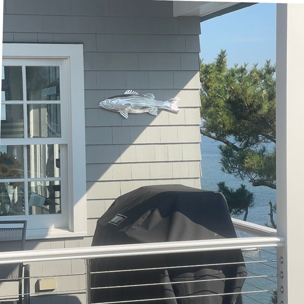 A handcrafted tribute to the Northeast's most iconic catch. This bold, character-rich piece showcases exceptional craftsmanship with brilliant silver leaf finishing, designed to shine indoors or weather the elements outside.