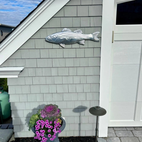 A handcrafted tribute to the Northeast's most iconic catch. This bold, character-rich piece showcases exceptional craftsmanship with brilliant silver leaf finishing, designed to shine indoors or weather the elements outside.